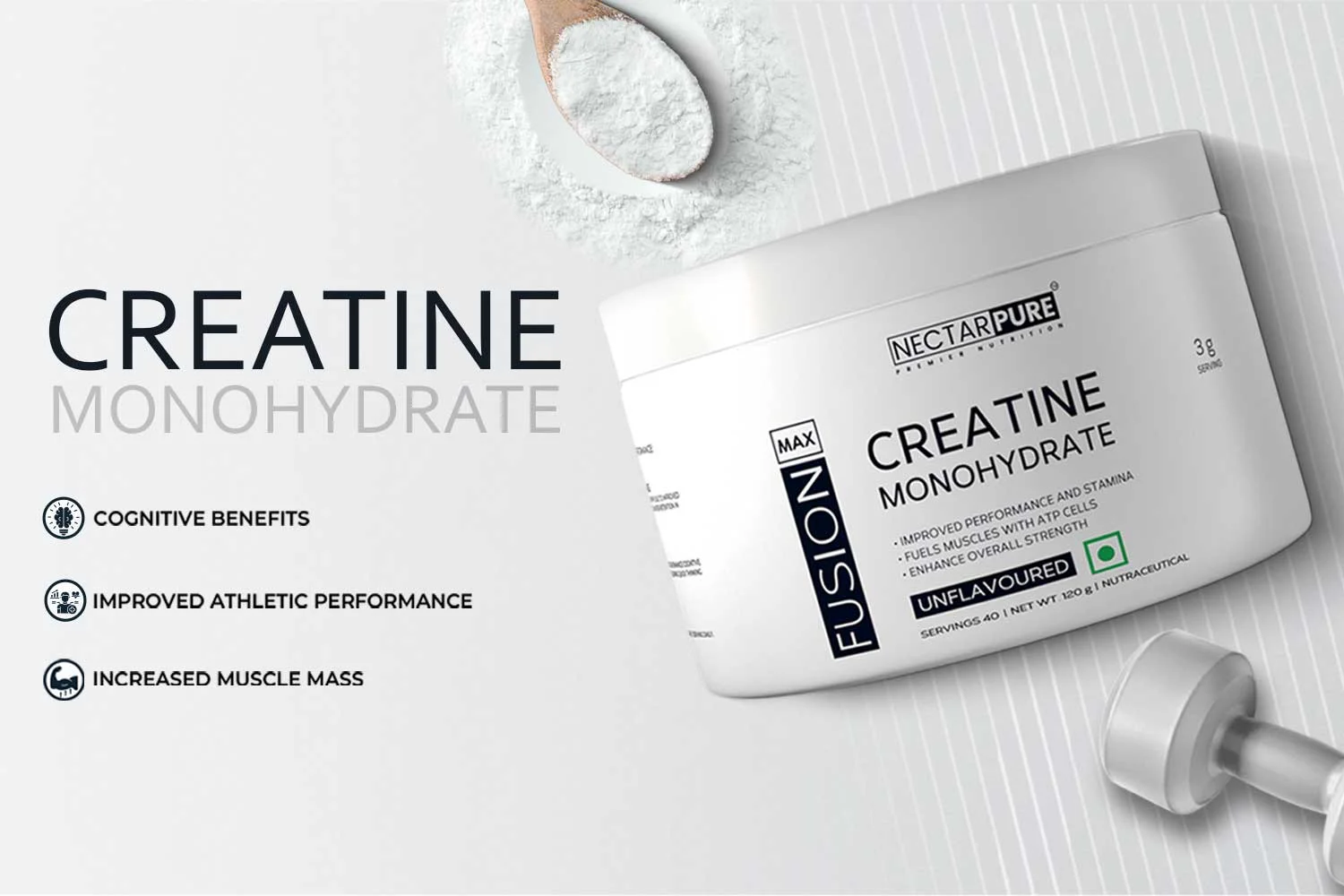 Strategists at DN Designs began by understanding the product and its USP, and followed up by researching the audience and market. Based on these as well as an understanding of the client’s vision, the team created a premium brand identity for NECTARPURE, right from designing a simple, elegant company logo to creating a clean label design for its FusionMax whey protein product.